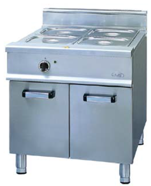 Pişmiş ve bekleyen gıdalarda bu süreç boyunca bakteri üremesinin önlenmesi ancak pişmiş gıda sıcaklığının 63 ⁰C’nin altına kesinlikle inmemesi ile sağlanabilir. Bain-Marieler de yalnızca Gastronomik kaplar kullanıldığından mutlaka bu konu gözeterek tasarlanmış olmalıdır. Termostatik veya manuel kontrollü imal edilebilirler. Aslında dinlenme tesislerinde gıdaların teşhir edildiği bankolar da birer bain-marie’dir. Bain-marie’ler 2 kW’tan 10 kW’a kadar üretilebilirler. Gaz giriş bağlantı çapları genellikle R1/2” dir.