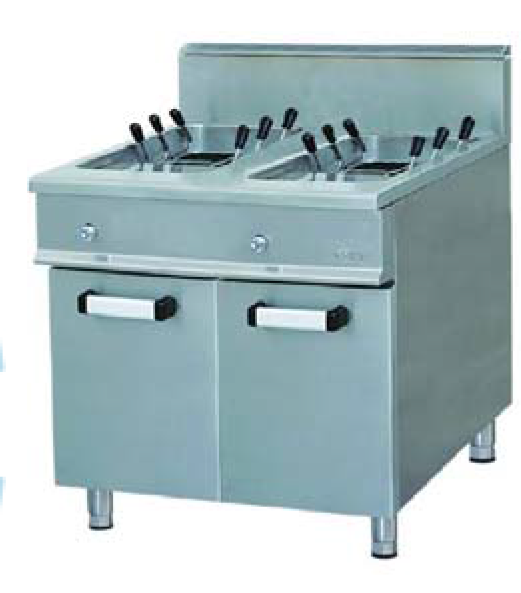 Makarna pişiricilerin gazlı olarak set üstü modellerden ziyade dolapı modeller üretilmektedir.çalışma esnasında temiz ve pis su bağlantılarına ihtiyaç duyulur. Bu üründe havuzlar mutlaka ferritik olmayan paslanmaz çelikten (AISI 304 veya AISI 316) yapılmalıdır. Ayrıca havuzların monoblok olması temizlik işlemini son derece kolaylaştırır ve kaynak yerlerinde bakteri üremesini önler. Makarna pişiriciler 12 kW’tan 36 kW’a kadar üretilebilirler. Gaz giriş bağlantı çapları genellikle R1/2” yada R3/4”’dir.